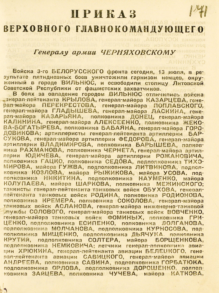 Во время форсирования реки Неман перетянул вплавь трос с правого берега на левый. Переплыв с трудом реку, отбиваясь гранатами и огнем от противника, закрепил трос и охранял его до прихода подкрепления. С помощью сержанта удалось переправить артиллерию, пехоту, повозки с боеприпасами и продовольствие.
