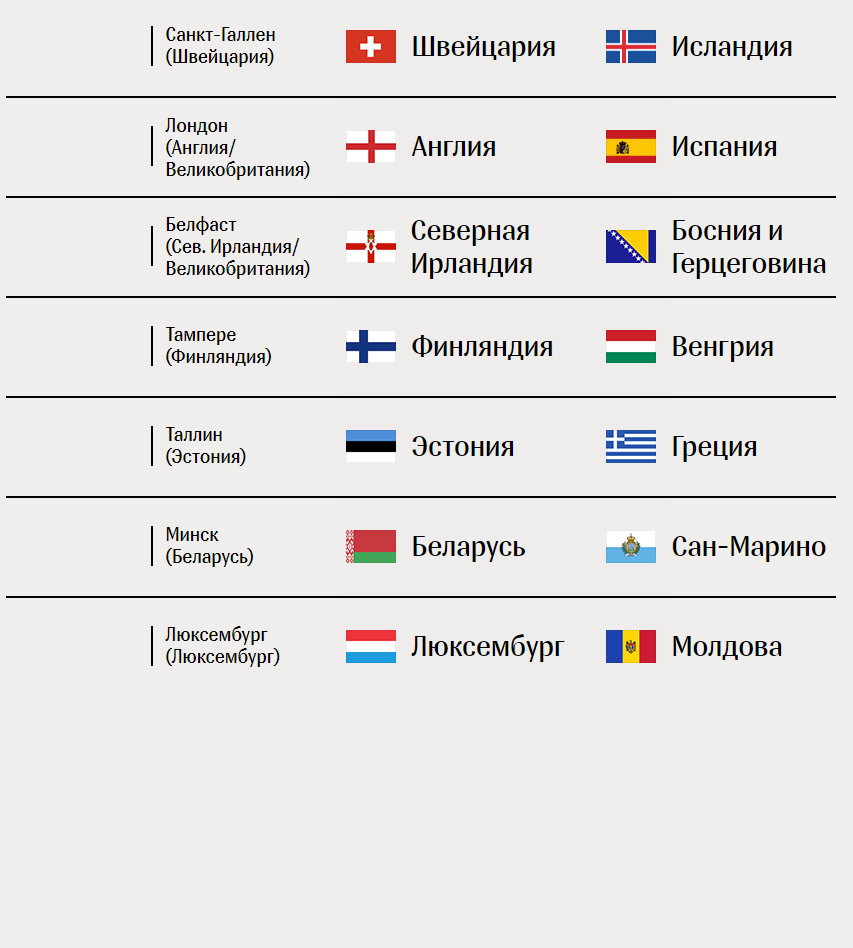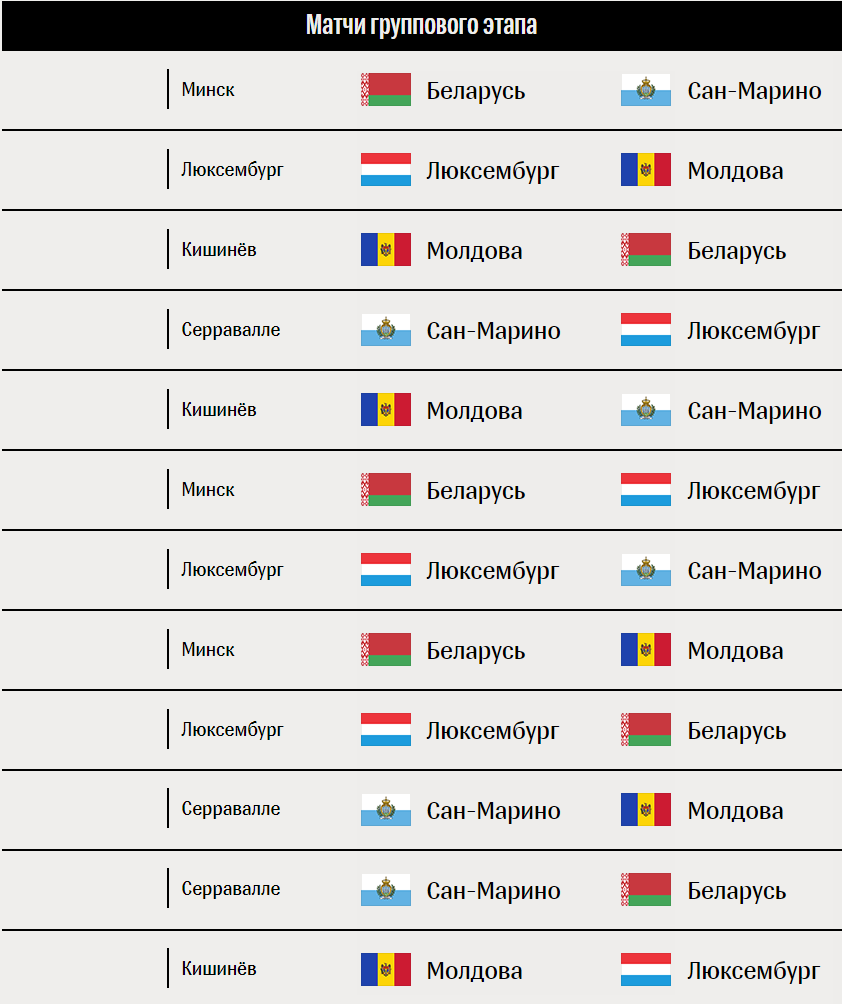 в соответствии с рейтингом УЕФА. Каждая лига состоит из 4-х групп по 3 или по 4 команды. Сборные проведут по 4–6 игр в зависимости