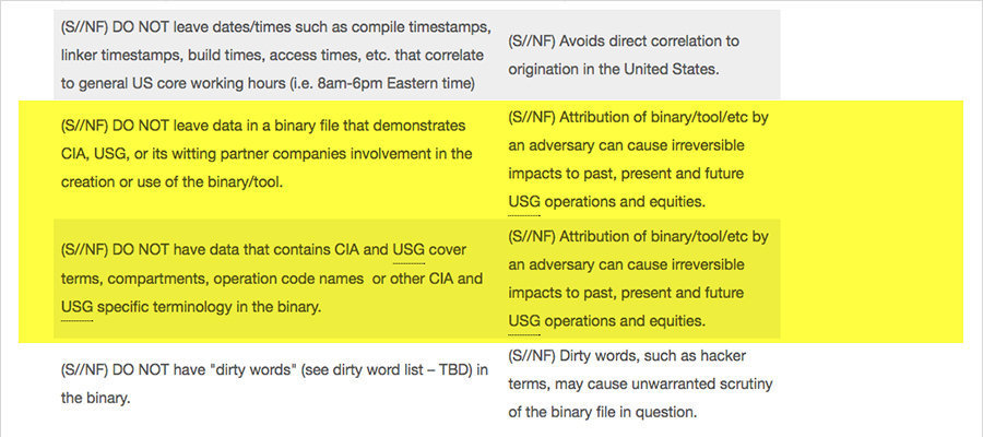 CIA cyber specialists used various techniques in order not to leave any data that could be used for attribution of the hacker attack. As a result, it is impossible to identify the true source of an attack, even after thorough criminal examinations. A special list of dos and don'ts was created for this.