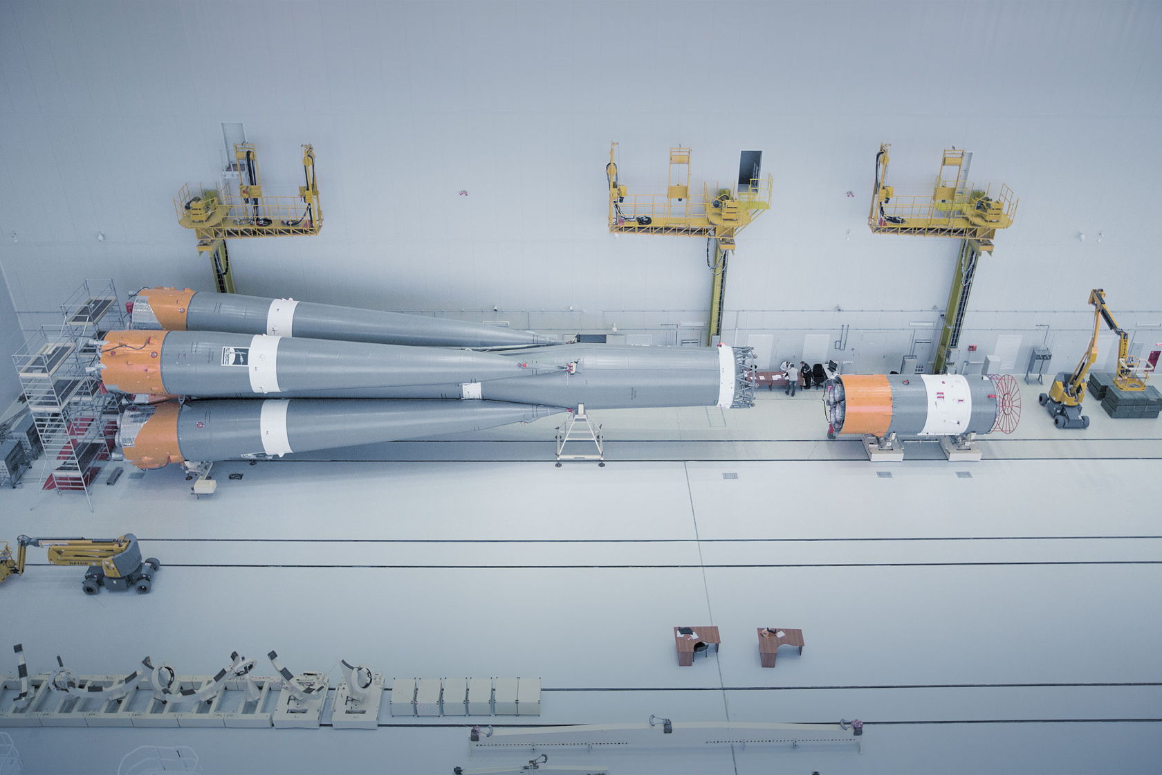 Rockets are reassembled at the vehicle assembly and testing building. Satellites to be launched at the site are prepared in another section of the building